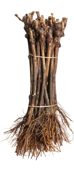 These one-year-old benchgrafts are planted in an outdoor nursery row in the spring, grow through the summer and fall, and are harvested after becoming dormant in winter. Before delivery, roots are trimmed, packed in wood shavings and held in cold storage.