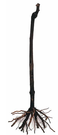 These dormant one-year-old rooted cuttings have been carefully disbudded to discourage sucker growth. Planted in a nursery row, they are harvested the following winter. Before delivery, rootings are trimmed, packed in sawdust and held in cold storage.