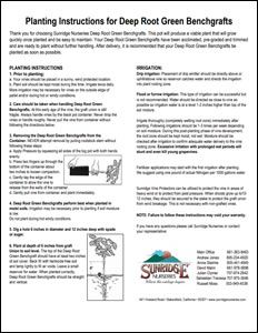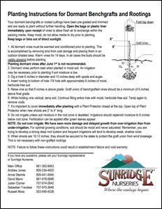 Thank you for choosing Sunridge Nurseries Deep Root Green Benchgrafts. This pot will produce a viable plant that will grow quickly once planted and be easy to maintain. Your Deep Root Green Benchgrafts have been acclimated, pre-graded and trimmed and are ready to plant without further handling. After delivery, it is recommended that your Deep Root Green Benchgrafts be planted as soon as possible.